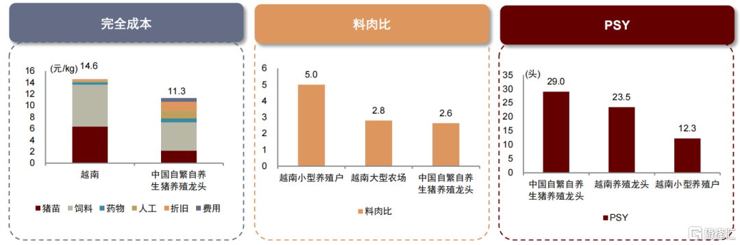 ► 生产效率:中国生猪养殖企业生产效率优于越南,技术优势体现为种猪选育、精准饲喂与生物安全的精细化管理能力。