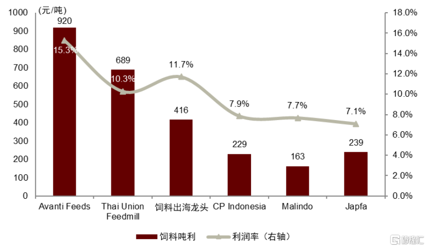 注:Avanti Feeds吨利与利润率均通过EBITDA计算,其余公司均为营业利润计算;CP Indonesia与Malindo饲料产量为测算数据