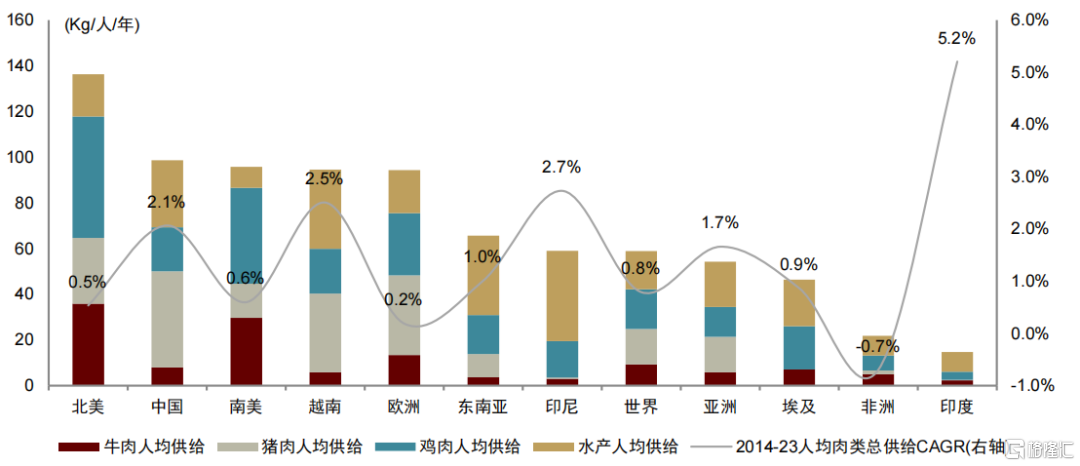 图表6:全球分区域人均肉类供给情况